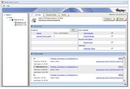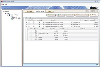 If a server is not a member of a DAG, the active databases are protected. Replay will protect all of the volumes including the system volume, the database volumes and log volumes. Full system recoveries, volume and database recoveries are supported. Mailbox database and volume rollbacks to Exchange 2010 DAG clusters require some manual steps to complete successfully. See the rollback and restore sections below for more details.Using Replay on Database Availability Group Members