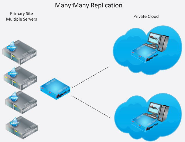 Replication replicates recovery points between the Replay cores and a private cloud in an efficient and safe manner enabling both off-site backup and off-site disaster recovery.