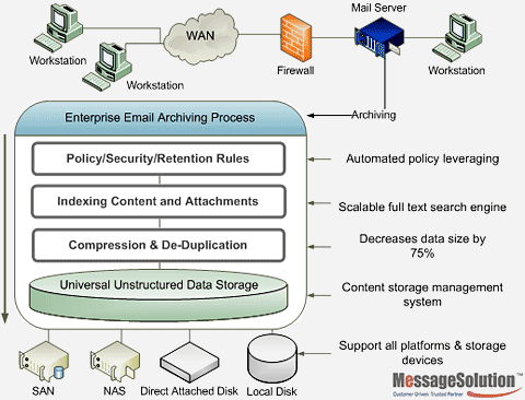 MessageSolution's EEA Compliance is the industry's leading compliance archiving solution. This powerful solution helps enterprises meet the security and audit standards for corporations and government agencies.