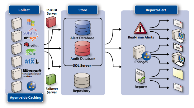 InTrust securely collects, stores, reports and alerts onevent log data from Windows, Unix and Linux systems, helping you comply with external regulations, internal policies and security best practices. InTrust helps you achieve regulatory compliance by auditing user access to critical systems and detecting inappropriate or suspicious access-related events. With this tool, you can collect, analyze, report and generate automated real-time alerts for all relevant access-related events across your heterogeneous network.